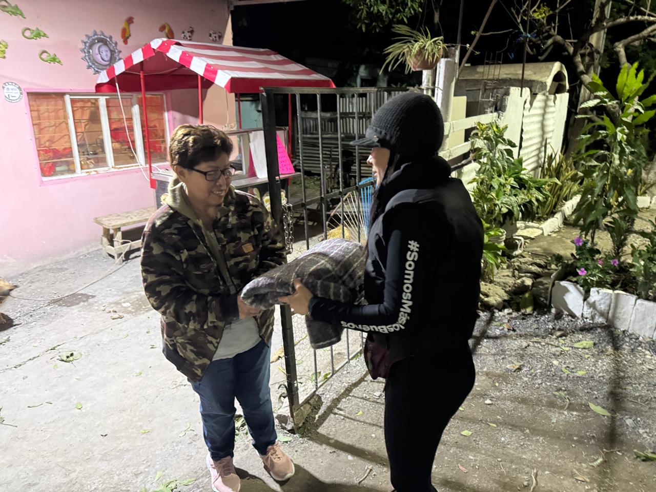 El Mante, Tam., Ante el descenso de las temperaturas, la regidora Astrid Sontoya, acompañada de su equipo de colaboradores y con el respaldo de la Avanzada Tamaulipeca, realizó un recorrido nocturno para la entrega de cobijas a familias de las colonias Rosalinda y Revolución Verde.