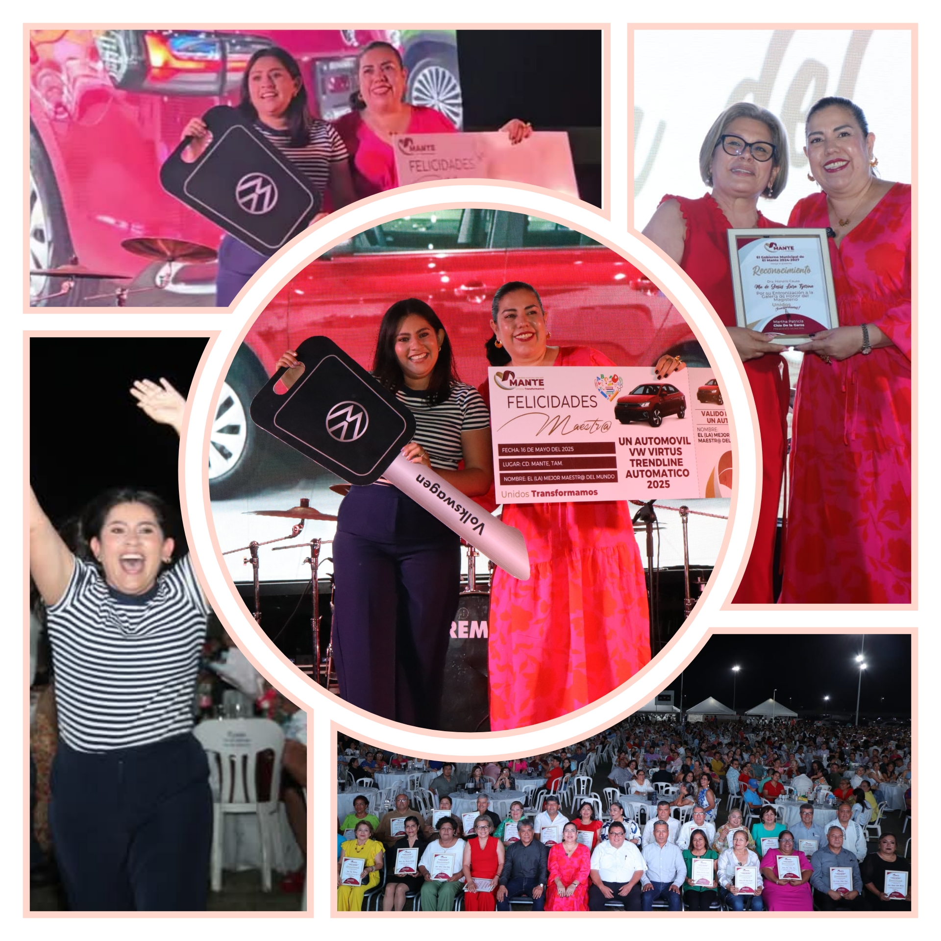 En la tradicional rifa de regalos, los maestros recibieron de parte del Gobierno Municipal: pantallas, refrigeradores, lavadoras y un automóvil Virtuss modelo 2025 siendo entregado a Karen Patricia Bautista Castillo ganadora con el número