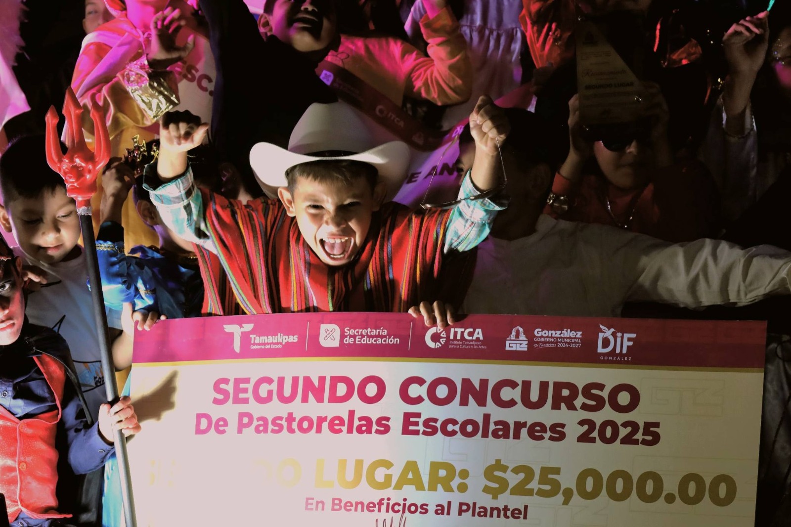 González, Tamaulipas. – Con el objetivo de preservar las tradiciones mexicanas y fomentar el desarrollo integral de la niñez, el Gobierno Municipal de González, encabezado por el Alcalde Dr. Miguel Alejandro Zuñiga Rodríguez , llevó a cabo con gran éxito el «Segundo Concurso de Pastorelas Escolares, edición 2025», un evento que unió a la comunidad en una celebración de cultura y sana convivencia.