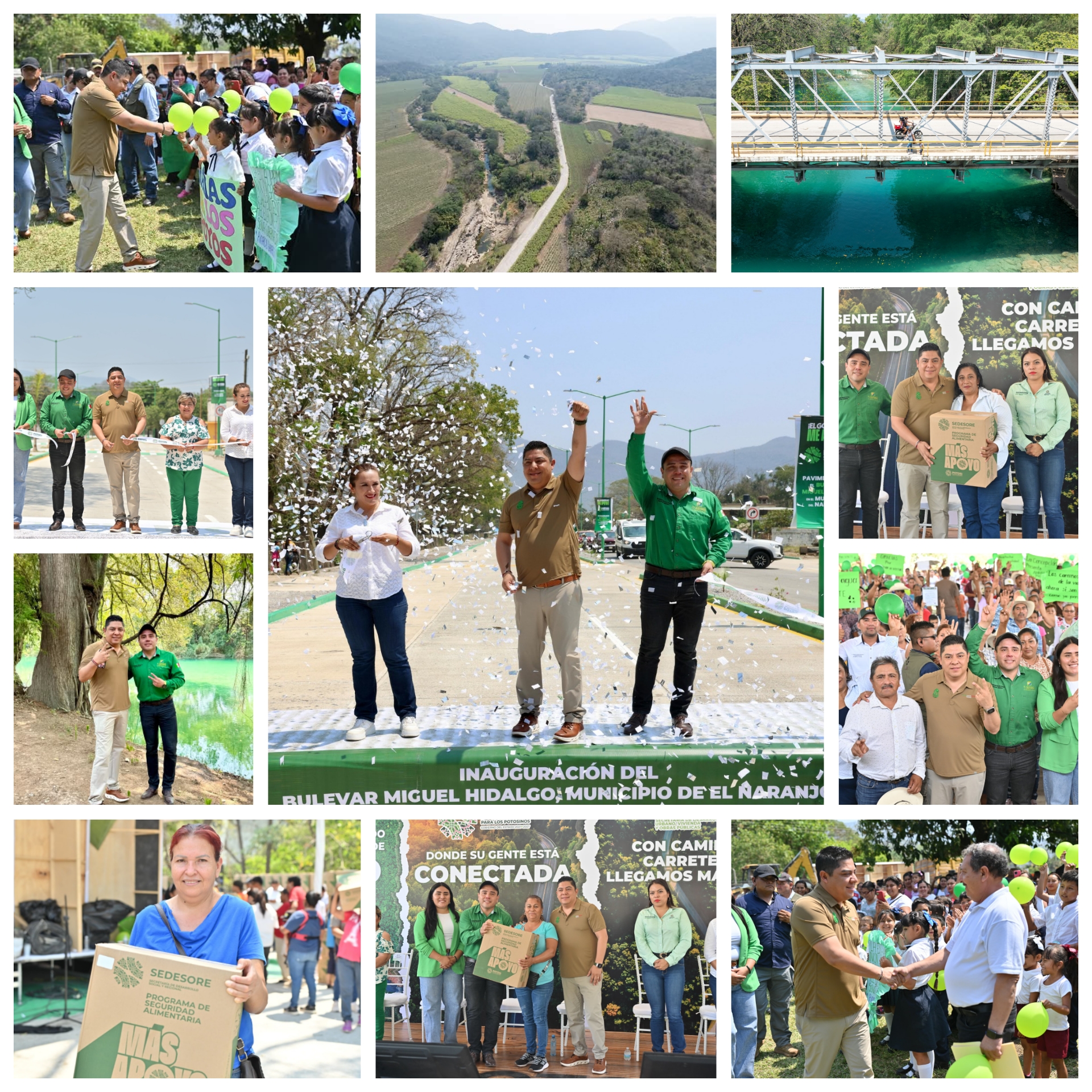 Con una visión de apoyo sin límites, el Gobernador de San Luis Potosí, Ricardo Gallardo Cardona inauguró en gira de trabajo las avenidas Miguel Hidalgo y Benito Juárez, arrancó la rehabilitación del camino La Ceiba- El Limonal y entregó apoyos alimentarios a las familias de El Naranjo.