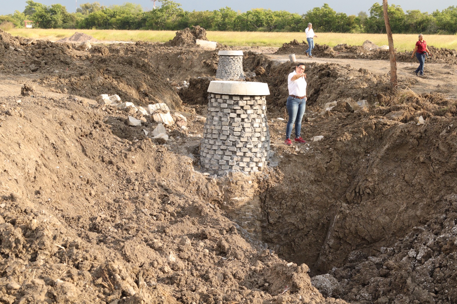 Con el firme compromiso de dar solución a fondo al problema de aguas residuales de las colonias Arbustos y Enrique Cárdenas, la Presidenta Municipal Patty Chío supervisó los avances en la construcción del colector Benito Juárez.