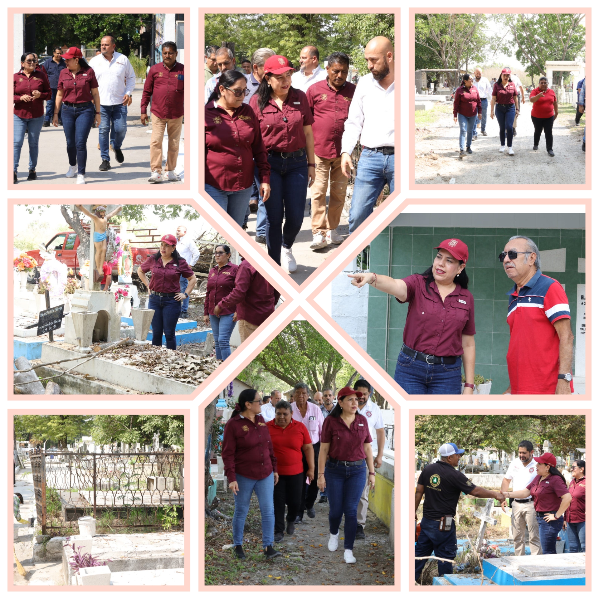 Durante la visita, la Presidenta Municipal verificó las condiciones en las que se encuentran los camposantos, que en los próximos días recibirán a cientos de familias que acuden a rendir homenaje y depositar ofrendas florales a sus seres queridos.